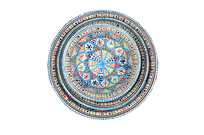 This bowl not only has the vibrant Rainbow Design inside, but the outside is made like a woven basket Patten. It is a very versatile bowl, not only for salads.