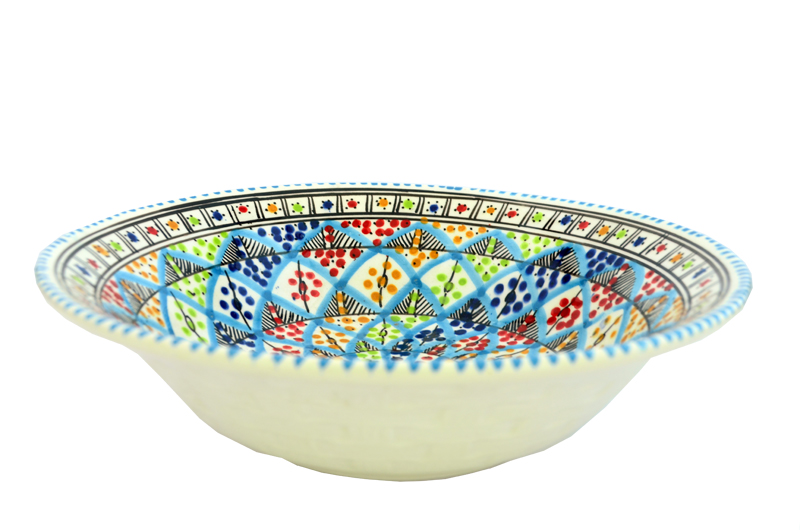 This bowl not only has the vibrant Rainbow Design inside, but the outside is made like a woven basket Patten. It is a very versatile bowl, not only for salads.